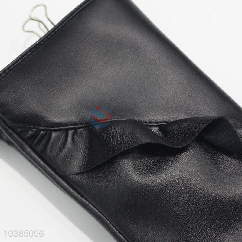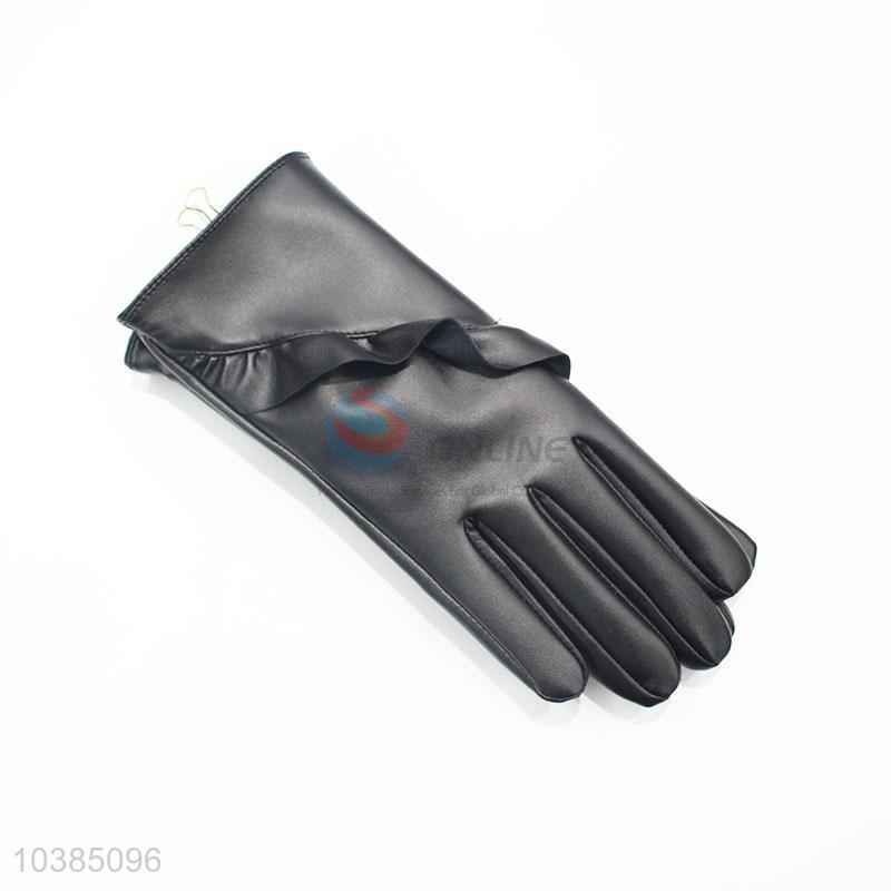 Elegant Women Black Flower Warm PU Gloves