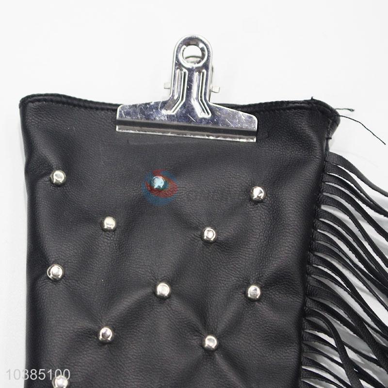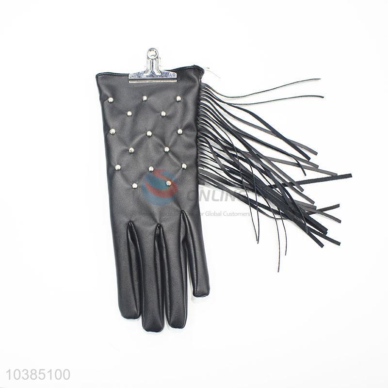 Fashion Women Crystal PU Leather Autumn Winter Tassel Warm Gloves