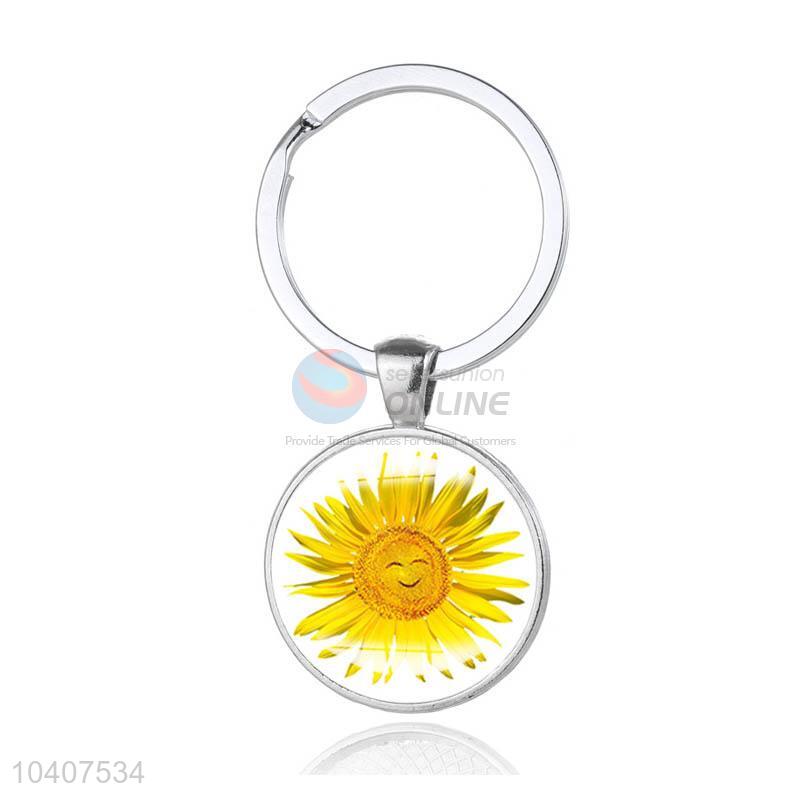 Sunflower Round Metal Key Chain/Key Ring