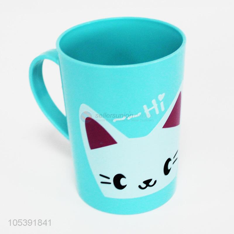 Cheap houseware cute cat printed plastic cup with handle