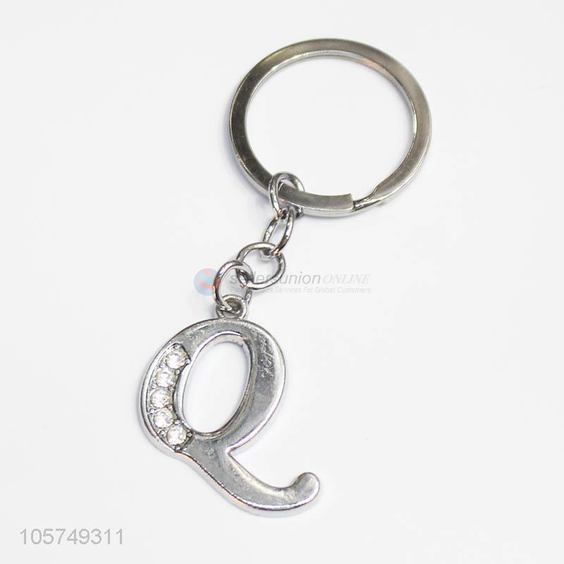 China factory custom letter Q shape zinc alloy key chains metal keyrings