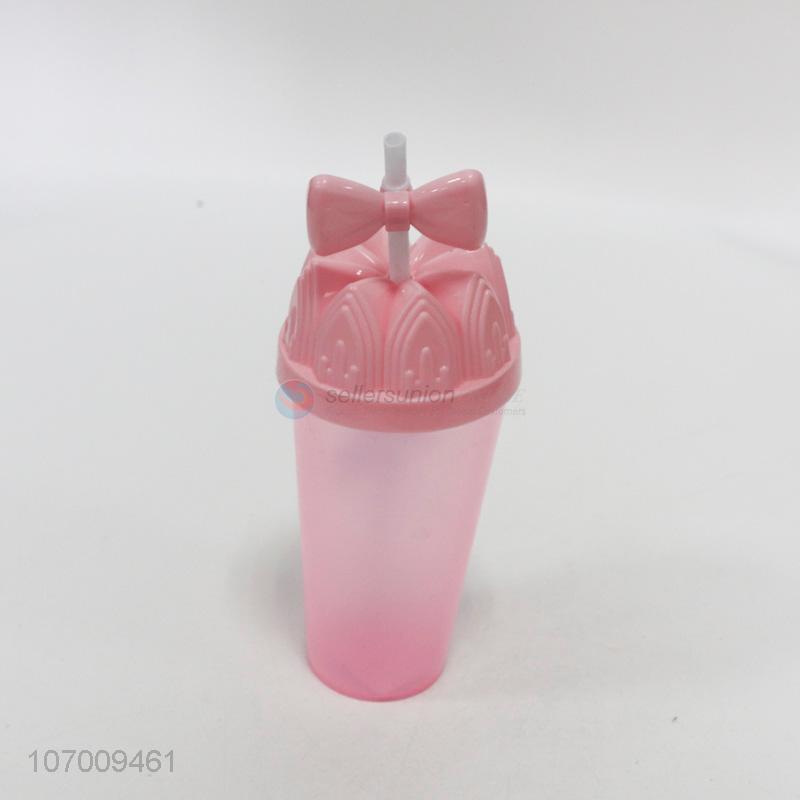 Premium quality novelty bowknot plastic drinking cup with straw